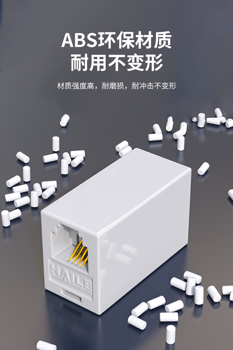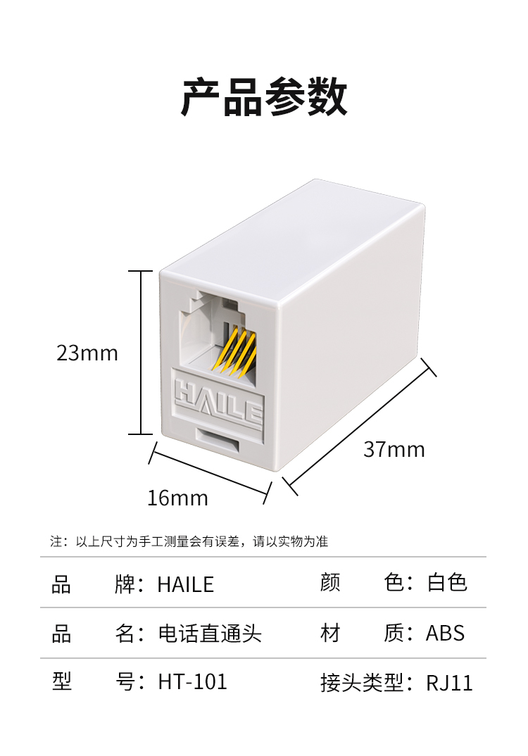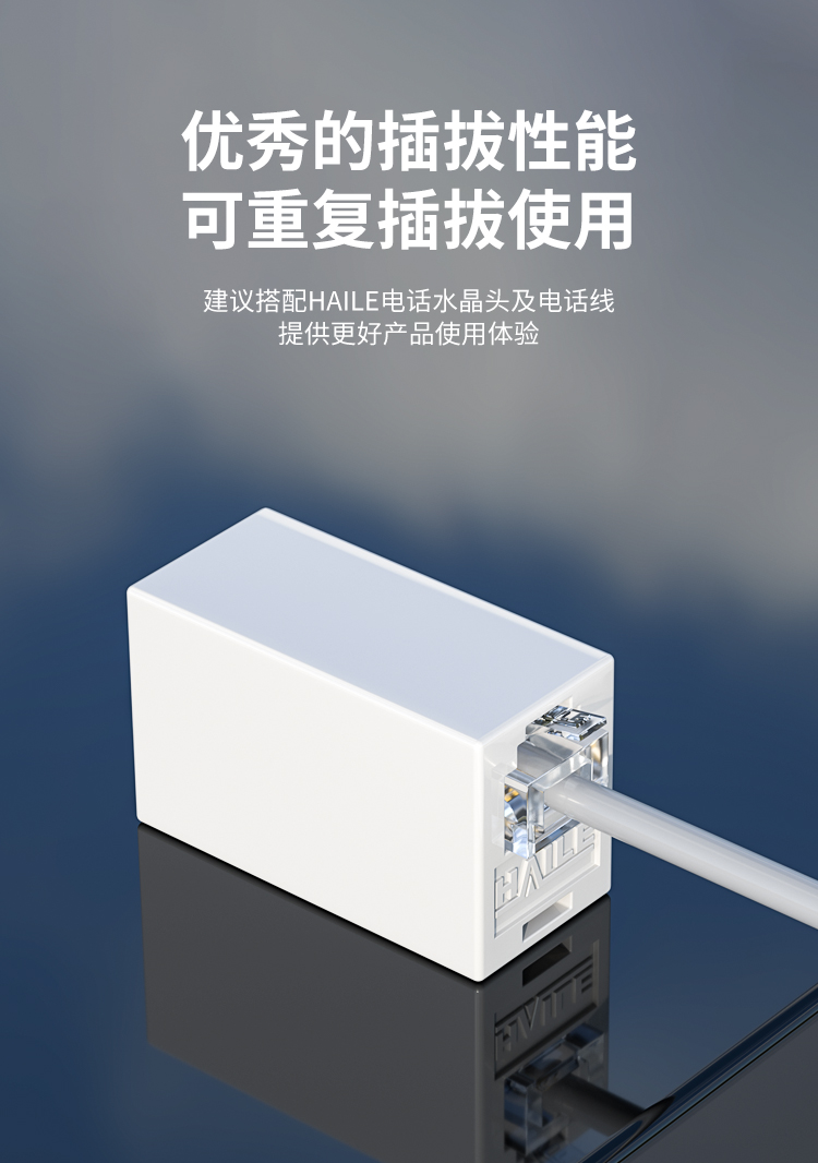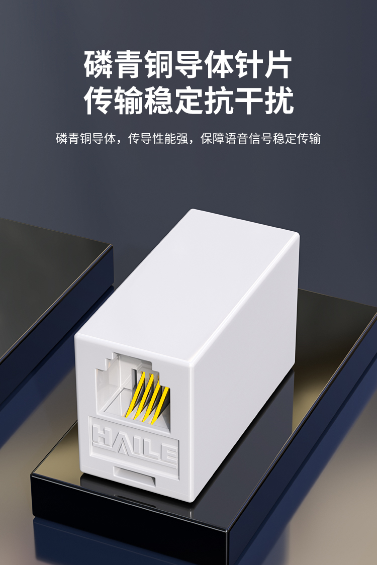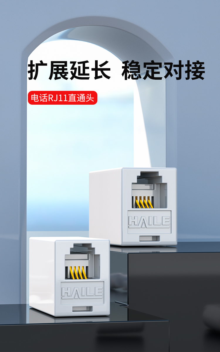 HAILE电话对接头RJ11电话水晶头6P4C直通双通电话线延长连接器 HT-101